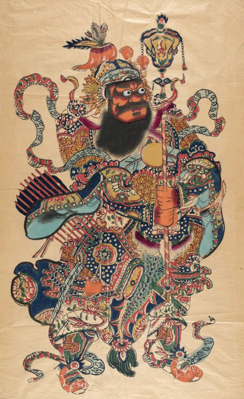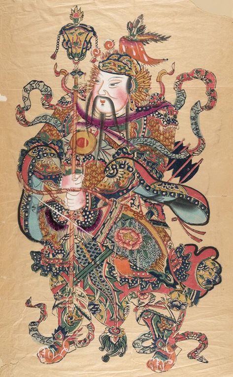 During festivals and seasonal occasions in China, family members select brightly colored prints to display on their doors, windows, walls, and furniture. These prints, called New Year pictures (nianhua), heighten the cheerful holiday feeling.
